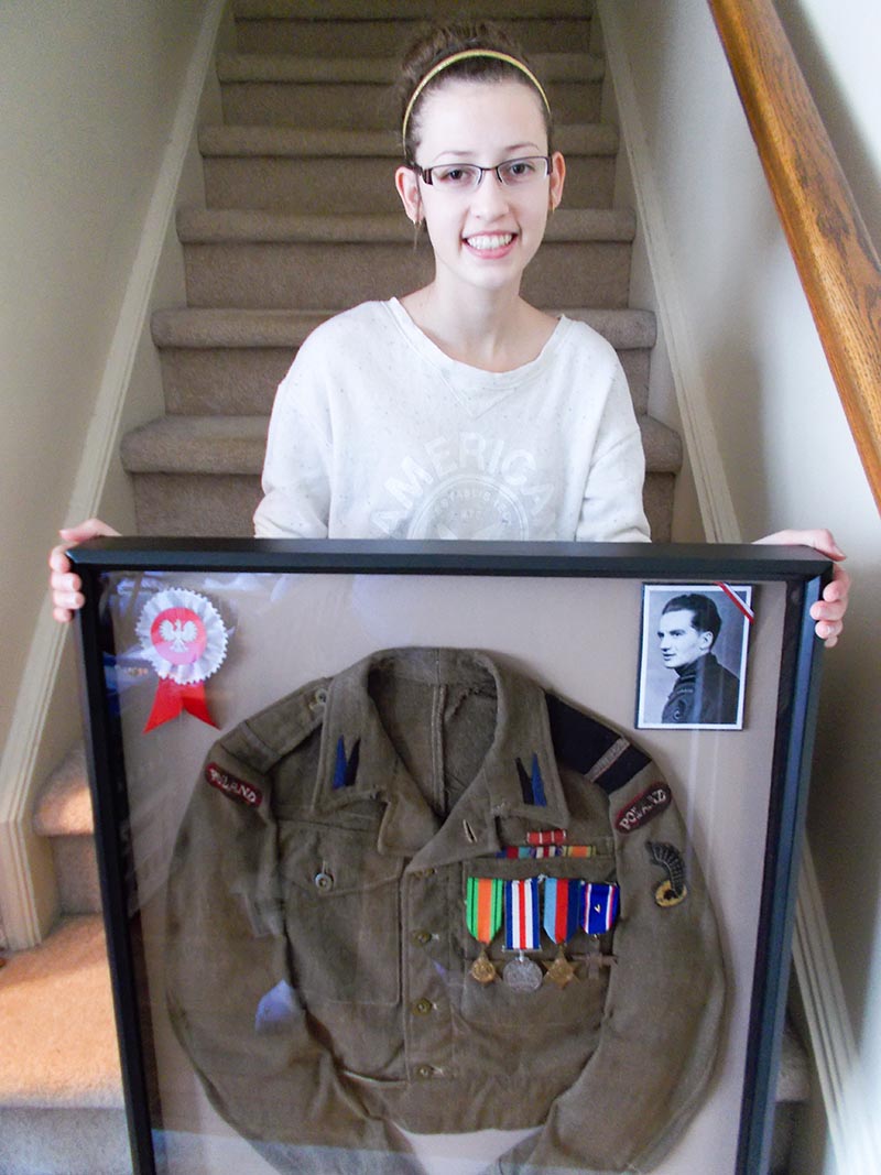 Frances Ozburn poses with a shadow box of memorabilia from her grandfather, Fred Stankiewicz. Members of the Polish community who took part in the Second World War are being honoured…