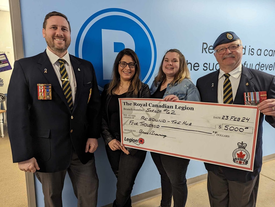 The Nightlight Sarnia adult drop-in centre has received a cheque for $25,000 from the co-owners of Progressive Auto Sales, which will help support expanded hours starting mid-April. From left are…