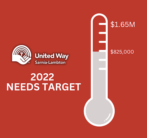 The United Way of Sarnia-Lambton has officially hit the half-way mark of the 2022 campaign, with $825,000 donated to the annual fundraising drive to date.