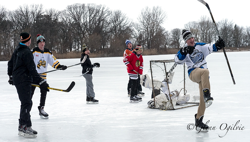 Local residents converged on Lake Chipican last week after a cold snap turned the Canatara Park pond into a large, flat, free skating rink. Above, Noah Best celebrates a goal…
