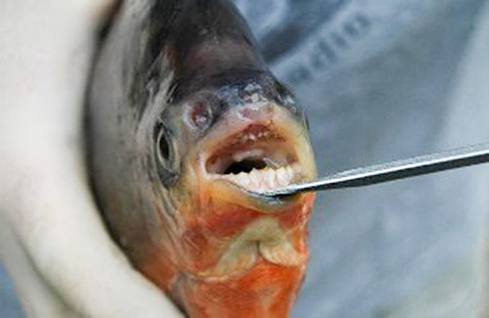 Journal Staff A South American fish described as a vegetarian piranha with human-like teeth has been turning up in local waters. Surprised anglers reeled in three red-bellied pacu in July,…