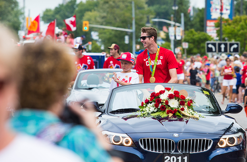 With the Olympic gold around his neck, Derek Drouin reacts to the cheering hometown crowd that greeted him in Corunna this morning. The 26-year-old Olympic high jump champion, who attended St.…