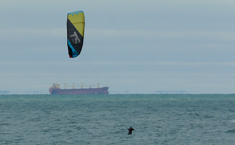It was 2 C. with brisk north winds blowing but that didn’t discourage Pat Holman of Bright's Grove from venturing out onto Lake Huron for a little kitesurfing on Saturday.