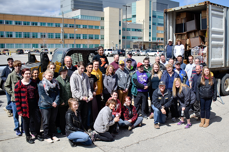 About 40 volunteers helped load two large shipping containers destined for South Africa with school furniture donated by the St. Clair Catholic District School Board.