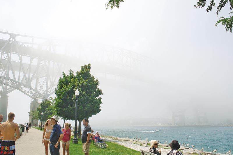 A cool summer has periodically produced thick fog at the mouth of Lake Huron, added to the always majestic atmosphere beneath the Blue Water Bridge. The fog in this image…