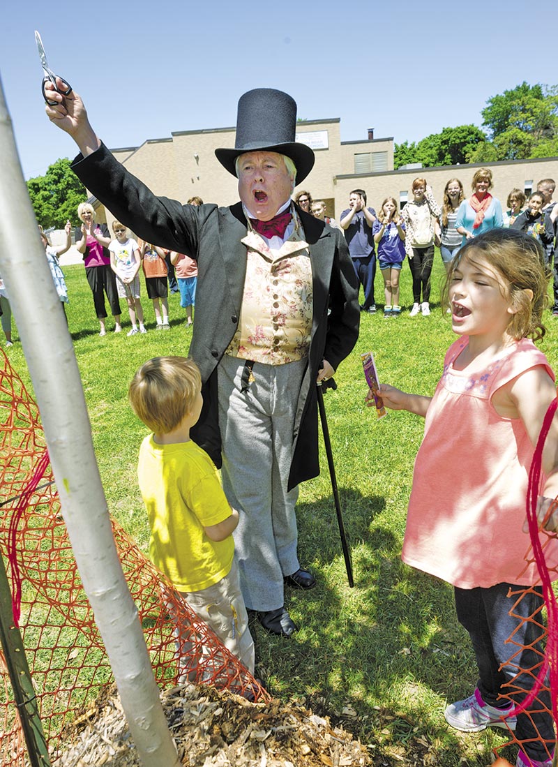 No less a figure than Malcolm Cameron was on hand at London Road School for a history lesson and tree planting recently. The city founder is seen here with Tyvayon…