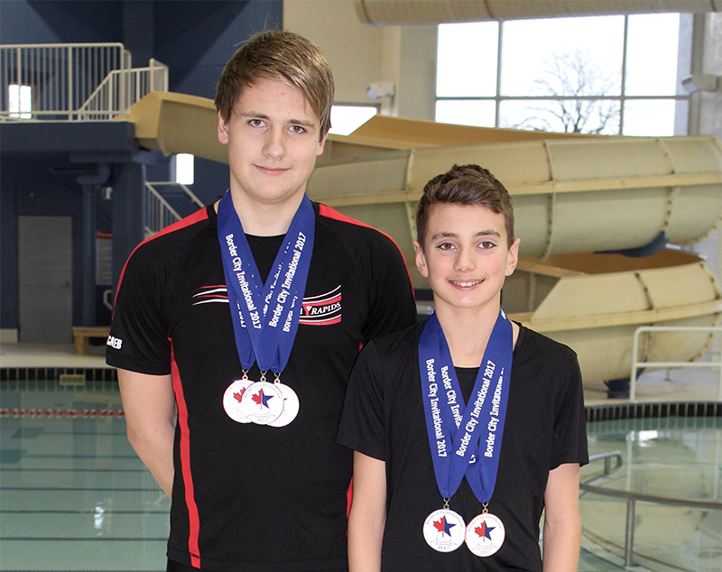 Sarnia's Caleb Wiersma, 16, left, placed 2nd in the 100m fly and 3rd in the 50m and 100m breaststroke at the Border City Invitational Swim Meet hosted by Windsor Acquatic…