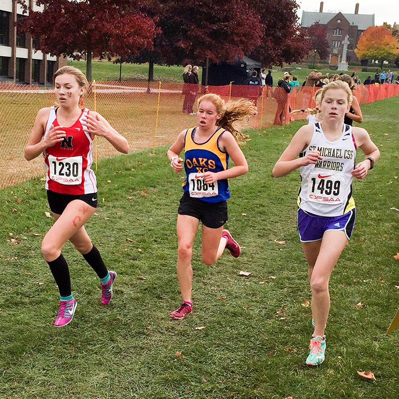 Kaylee White, left, of Northern Collegiate, was the top finisher among city high schools runners at the all-Ontario cross country finals, finishing 34th in a junior girls field of 294…