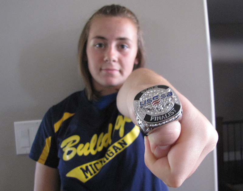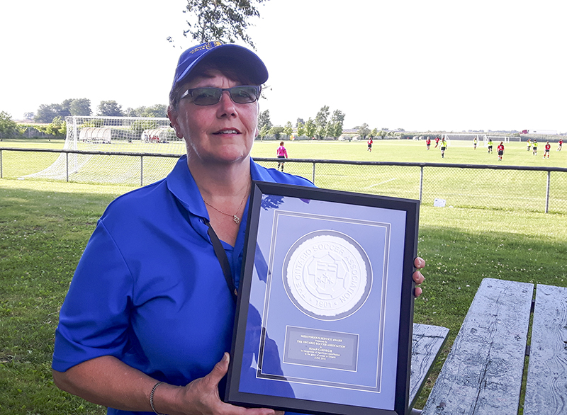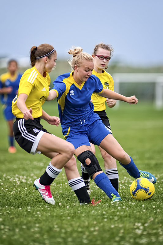 Bridget Krisjannson of the Sarnia Spirit U13 battles for control of the ball against two players from Waterloo United during their final game of the Ontario Cup U13 tournament. Eight…