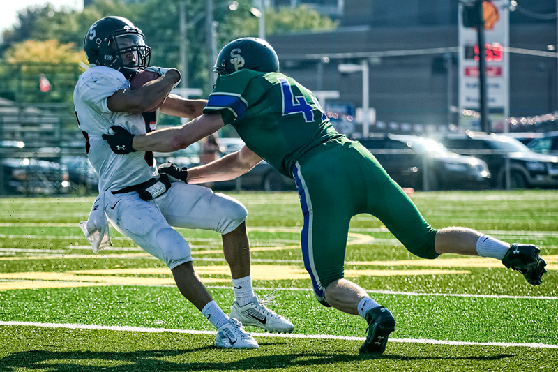 The St. Clair Colts, seen in purple and white, used home field advantage to defeat Wallaceburg 27-20 in senior boys high school football action on Friday, Sept. 18. Submitted Photo