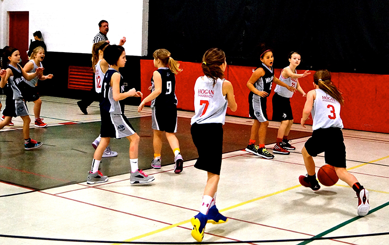 Hannah Dempsey, of the Valhalla Vikings novice basketball team, drives hard to the net against the Chatham Wildcats on Jan. 31 during a U10 tournament hosted by Sarnia.
