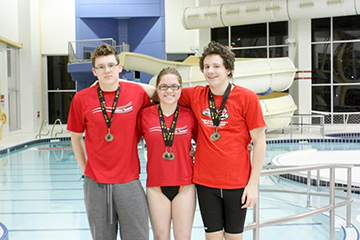 Four members of Sarnia Y Rapids 2 swim team won gold in the pool at the Team Champs meet in Windsor recently. From left are, Samuel Boily-Dufour, 16, Bethany Robinson,…