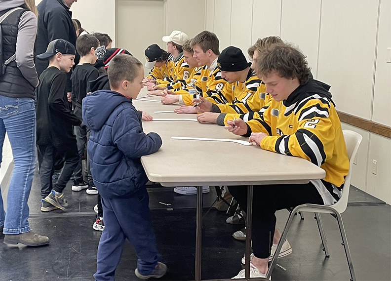 Journal staff Members of the Sarnia Sting surprised some youngsters at the inaugural Battle under the Bridge U7 Hockey Jamboree, Sunday, signing mini-sticks and shirts during the players' lunch break.