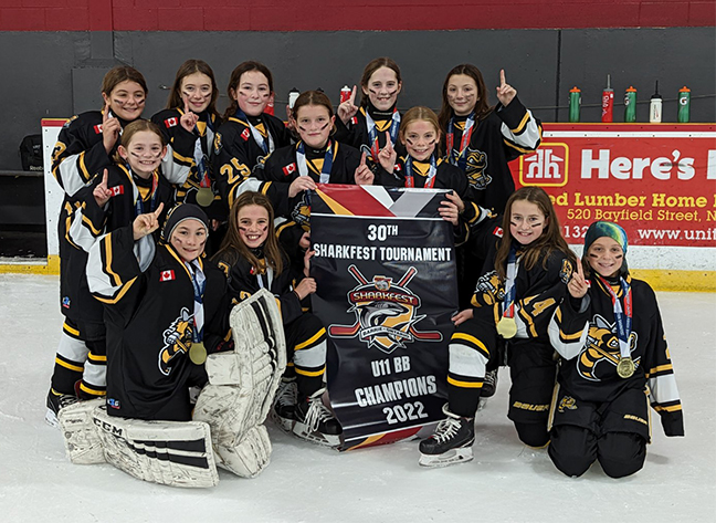 The Sarnia Jr. Lady Sting U11 BB team won gold at the Barrie Sharkfest tournament over the weekend after a 1-0 victory over the Oakville Hornets in the championship matchup.