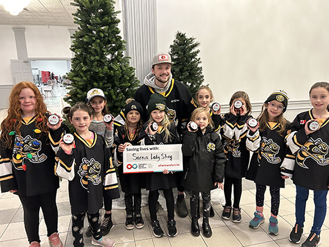 Players from the Sarnia Jr. Lady Sting U-9 ‘C’ and ‘HL’ teams were challenged to find a person in their lives to donate blood on their behalf, recently.