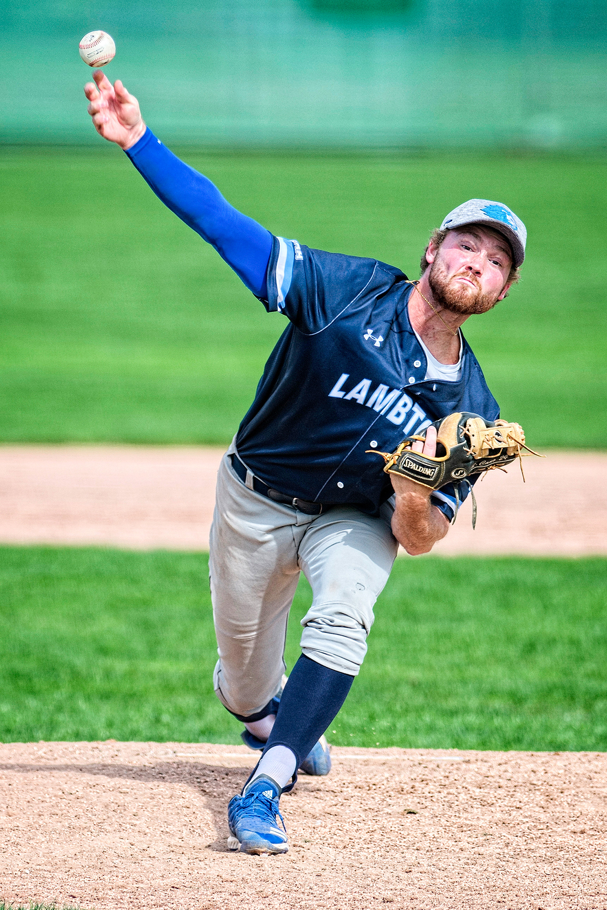 Joey Stock of the Lambton College Lions baseball team fires in a pitch during the final two innings of a game against the George Brown Huskies on Oct. 5.