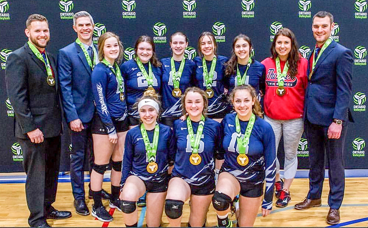 The Sarnia Twin Bridges Thunder 15U girls’ volleyball team downed Oakville in the final to win a gold medal in their division at the Ontario Championships in Waterloo recently.
