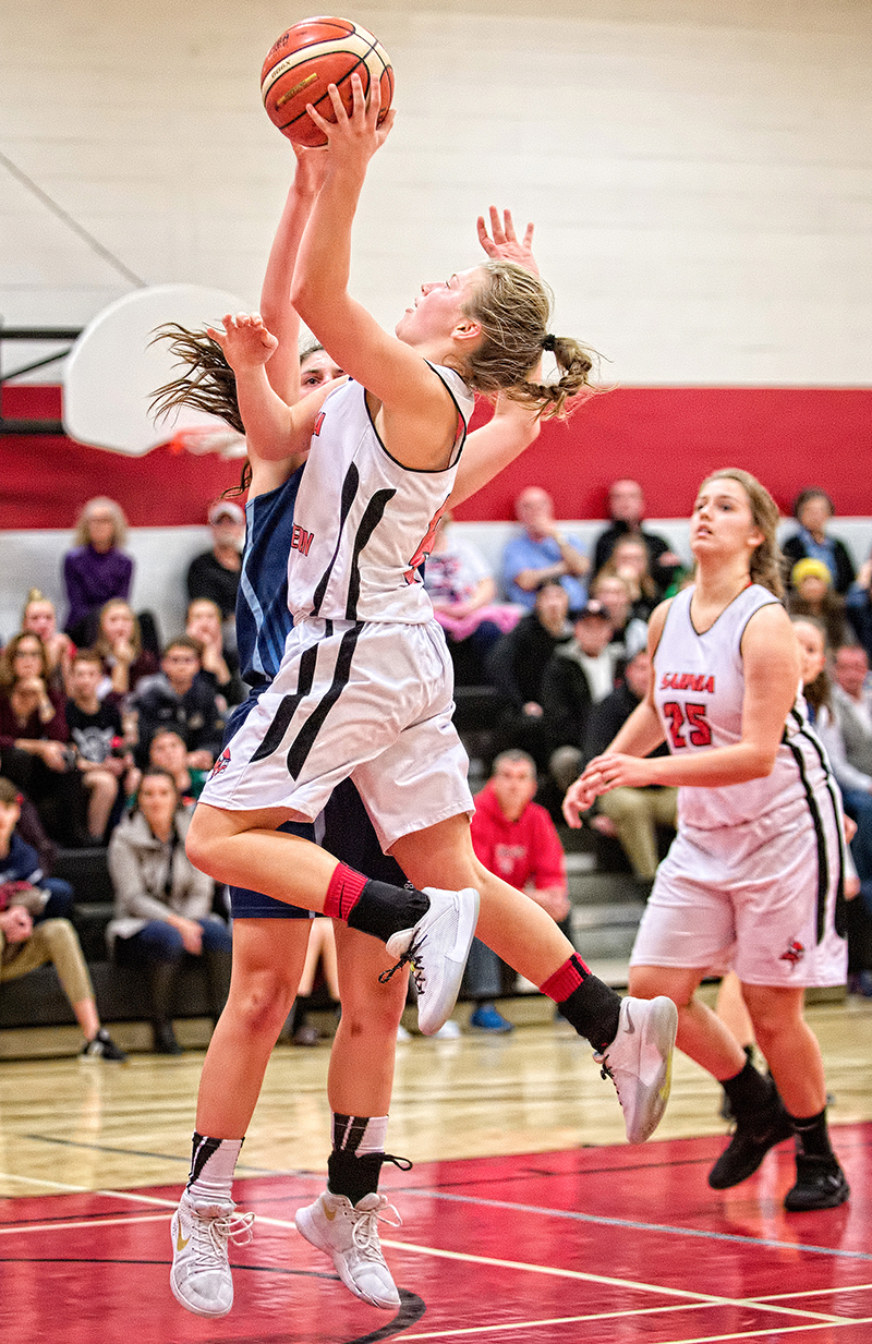 Laneigh Shirley, left, scored 15 points to lead Northern Collegiate to a 54-32 victory over St. Patrick’s and help the Vikings claim the LKSSAA senior girl’s basketball championship on Nov.…