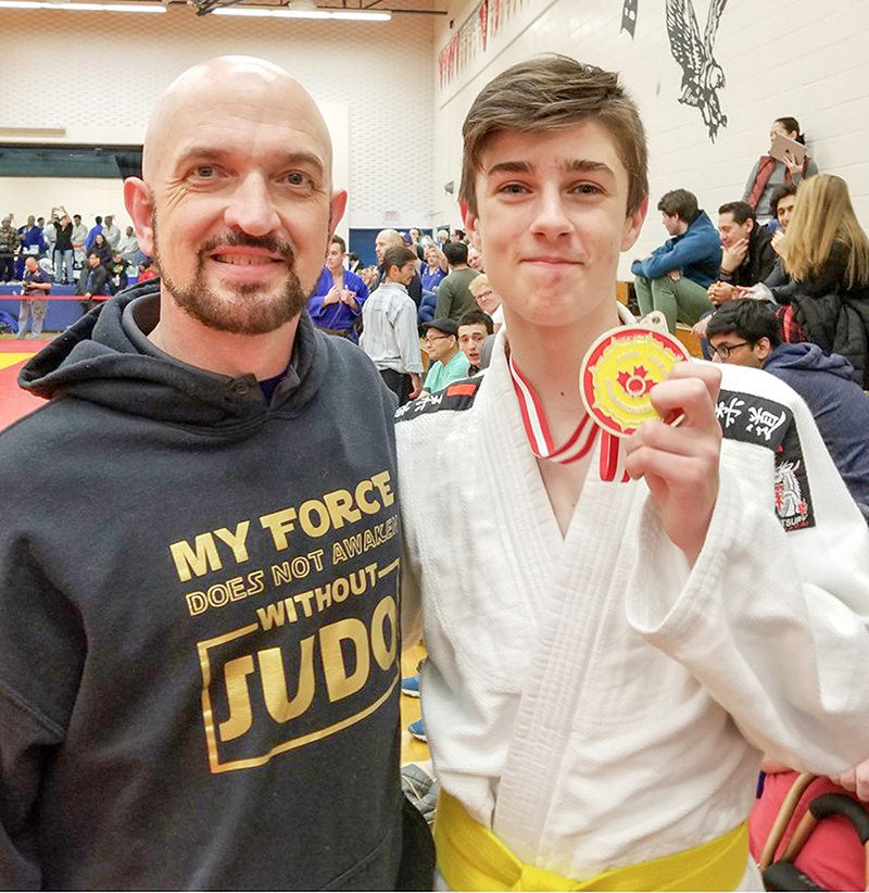 Seven members of Sarnia’s Bushido Sing Judo/Jiu-Jitsu School Of Self Defense won medals at the Peel Judo Championships on April 9, including silver-medal winner Lucas Meyers, right, seen here with…