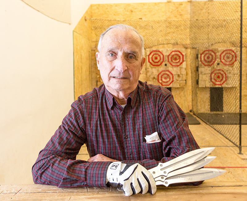 Troy Shantz Ross Robertson is an 84-year-old avid golfer who has unexpectedly found an edge at another sport — axe and knife throwing. “The first one I threw stuck in…